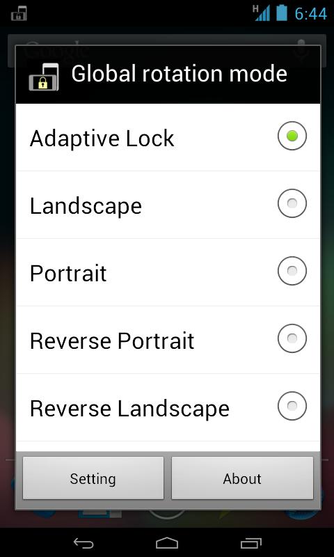 - Per app setting – individual apps can be set to stock mode if they have problems with force landscape mode