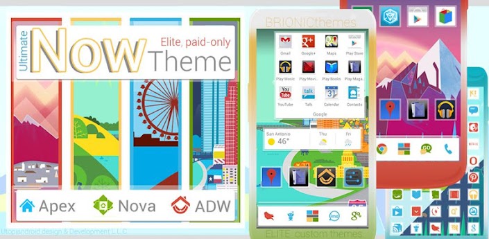 Overview: Ultimate Now Theme is a brand new premium launcher theme for Nova Launcher, Apex Launcher, ADW Launcher, SS Launcher, and others.