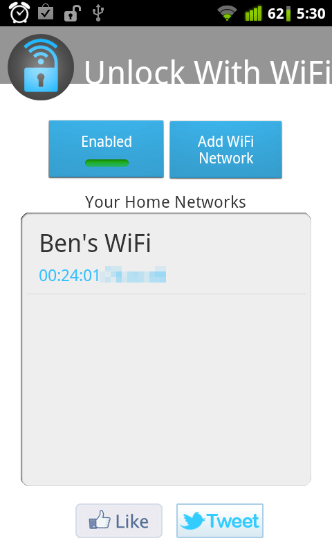 Make sure to exclude Unlock With WiFi from your task killer apps, or it won’t work properly.